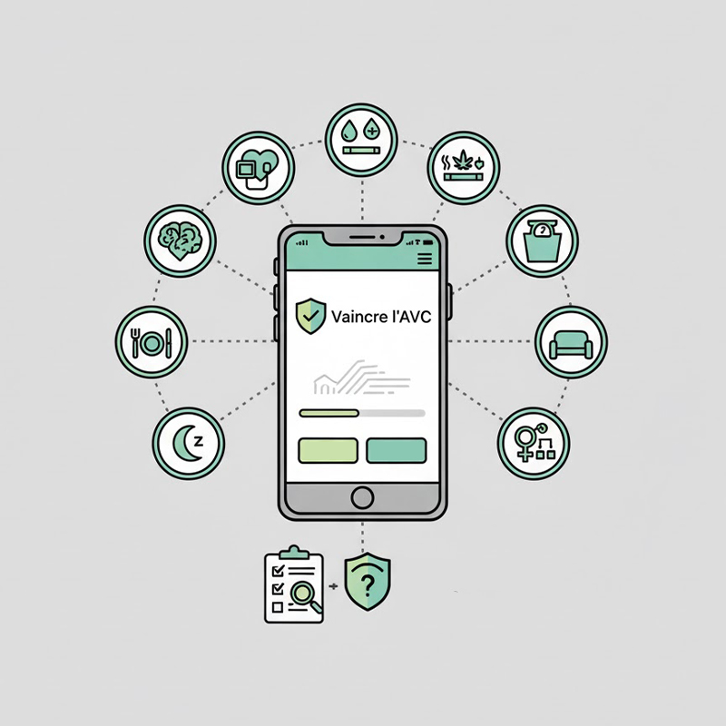 L’idée est née de la recherche d’un moyen d’intéresser le grand public à son risque d’AVC et de découvrir les moyens pour diminuer ce risque de 80%. L’idée d’un questionnaire simple sur les facteurs de risque d’AVC s’est imposé à moi. Ensuite, il m’est apparu évident que donner un risque chiffré à une personne ne pouvait que l’effrayer et augmenter son niveau de stress. D’où l’idée d’envoyer un compte rendu, personnalisé, en fonction des réponses de la personne au questionnaire, pour indiquer, facteur de risque par facteur de risque, comment diminuer son risque de 80%.